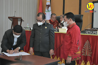 | Penandatanganan hasil keputusan oleh Pimpinan DPRD Kota Gunungsitoli |Foto: Istimewa |